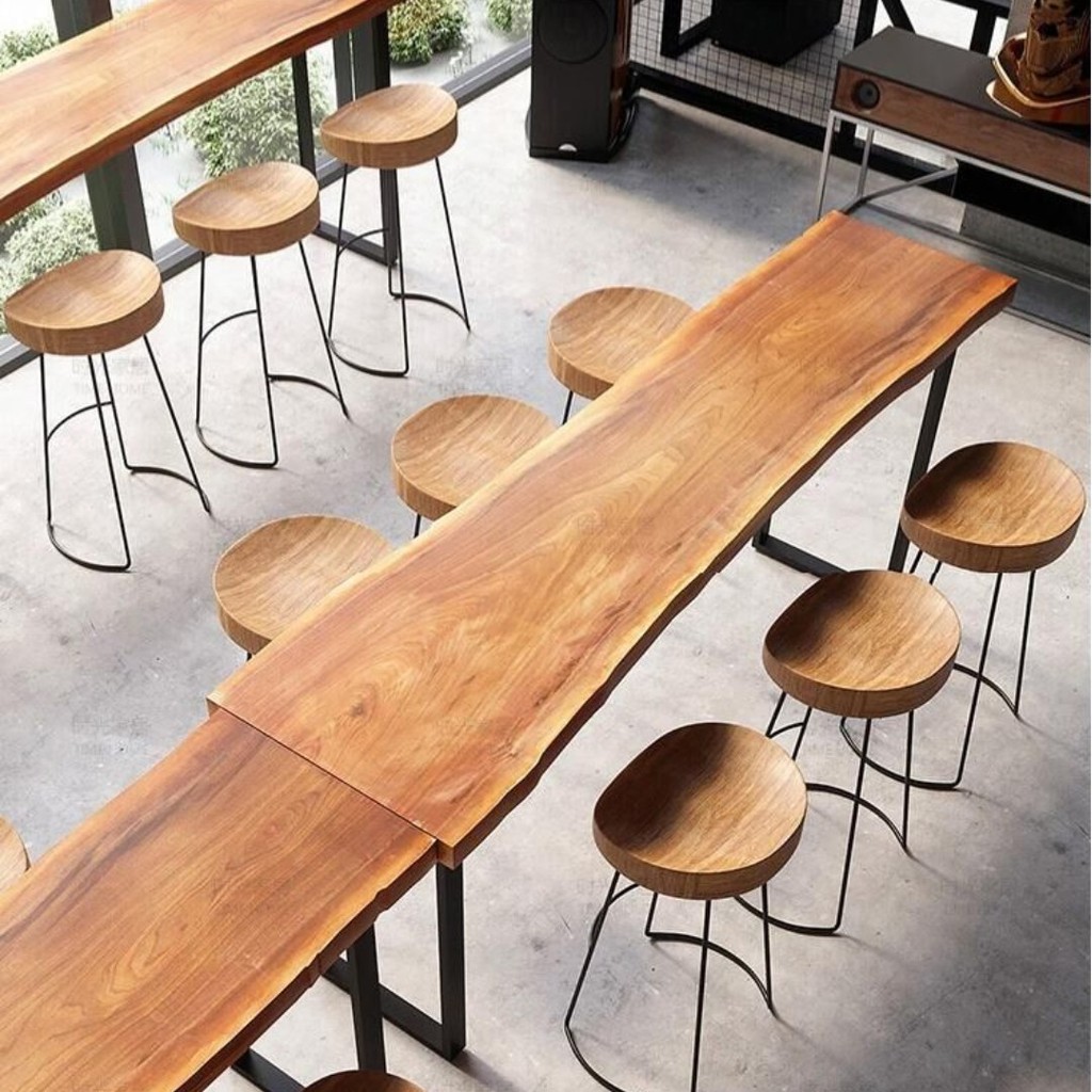 Bar Table Home Wall Solid Wood High Chair Water Long